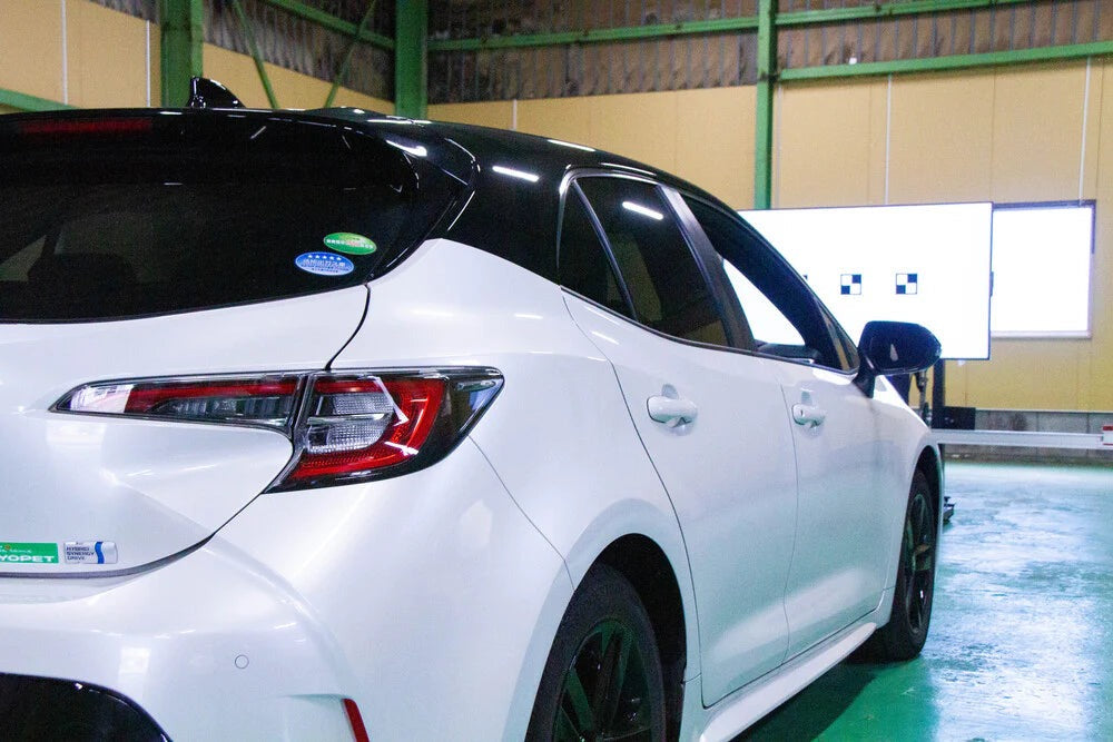施工前に高精度のレーザー水準器を使用し、車両の中心線を測定します。中心線の測定が誤っていると、エーミング調整の効果が発揮できません。