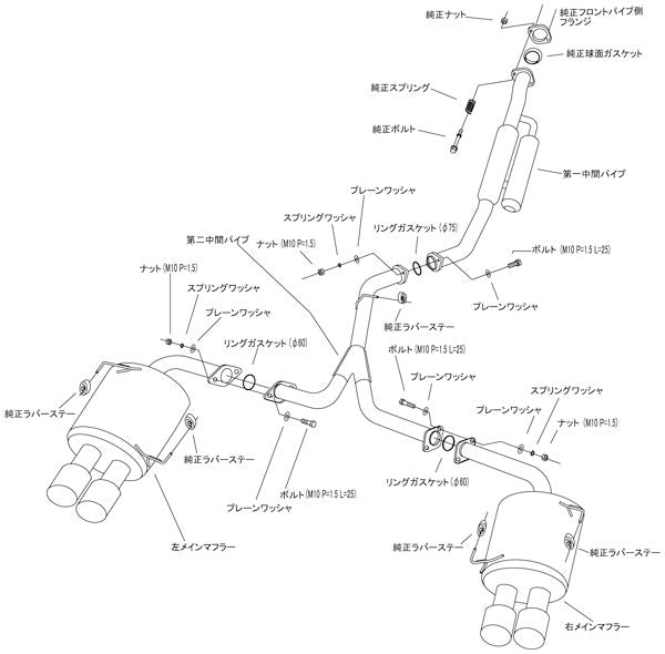 記載されているパイプ径のφ数はマフラー構成上で一番太い部分のφ数。