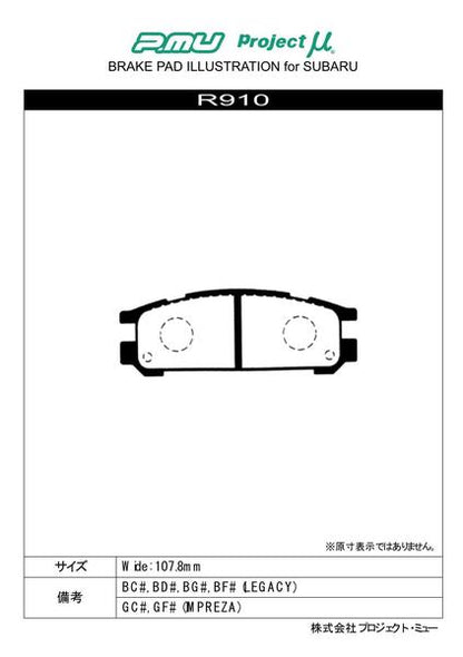 Project μ TYPE PS スバル レガシィツーリングワゴン BGC 1997/08〜1998/11 リア左右セット R910